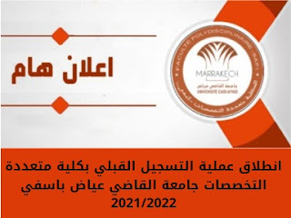انطلاق عملية التسجيل القبلي بكلية متعددة التخصصات جامعة القاضي عياض باسفي 2021/2022